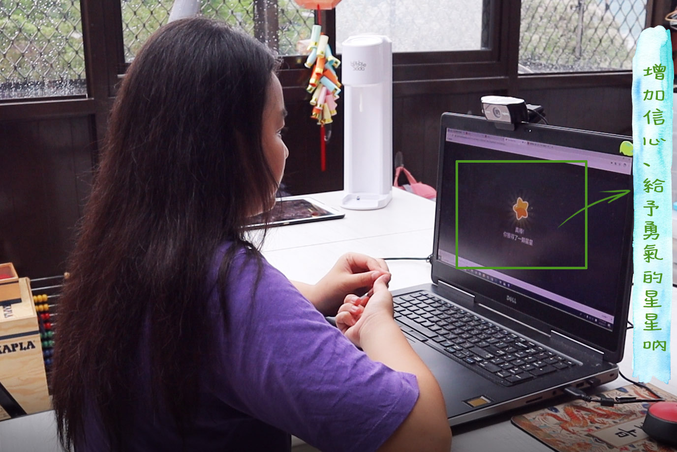 課程開始前幾分鐘,就發現大寶超緊張一臉僵住,不時一直回頭看我,變成不是要想很久才回答,就是急著答卻答非所問,然後我突然想到去年五寶爸陪她試上的時候,她也非常地緊張不怎麼開口,難道是因為怕答錯被我罵?怕讓我失望嗎?然後我架了台相機拉近側錄,想結束後再看看她學習的狀況,就示意她我先離開去忙了。