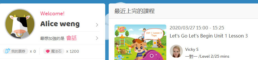 果然是孩子口語練習的最佳平台👍全程有外師一對一的互動就是有這樣的好處。
