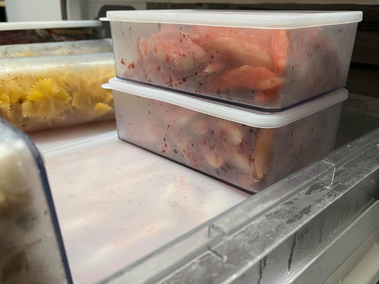 當時把冰箱初步整理一下後,我就去採購一家十口一週的伙食量,一回到家就開始做分裝: