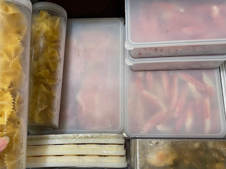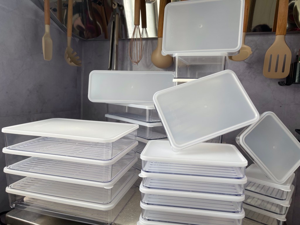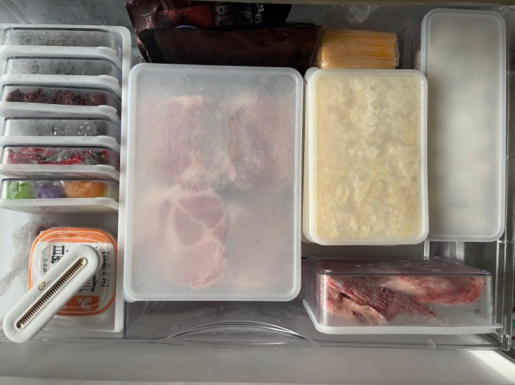 上面兩張圖的食材量完全一樣,視覺和空間卻是大大不同,而且又符合我上述便於一家老小使用的需求,決定要幫家裡兩個冰箱大瘦身,於是我連兩天又找了兩個團主加購別的size來試試💪都下單完的隔天,竟然接到廠商的邀約開團,開心死,因為實際上兩個大冰箱是需要再加購一些數量,那就可以跟自己團了🥺