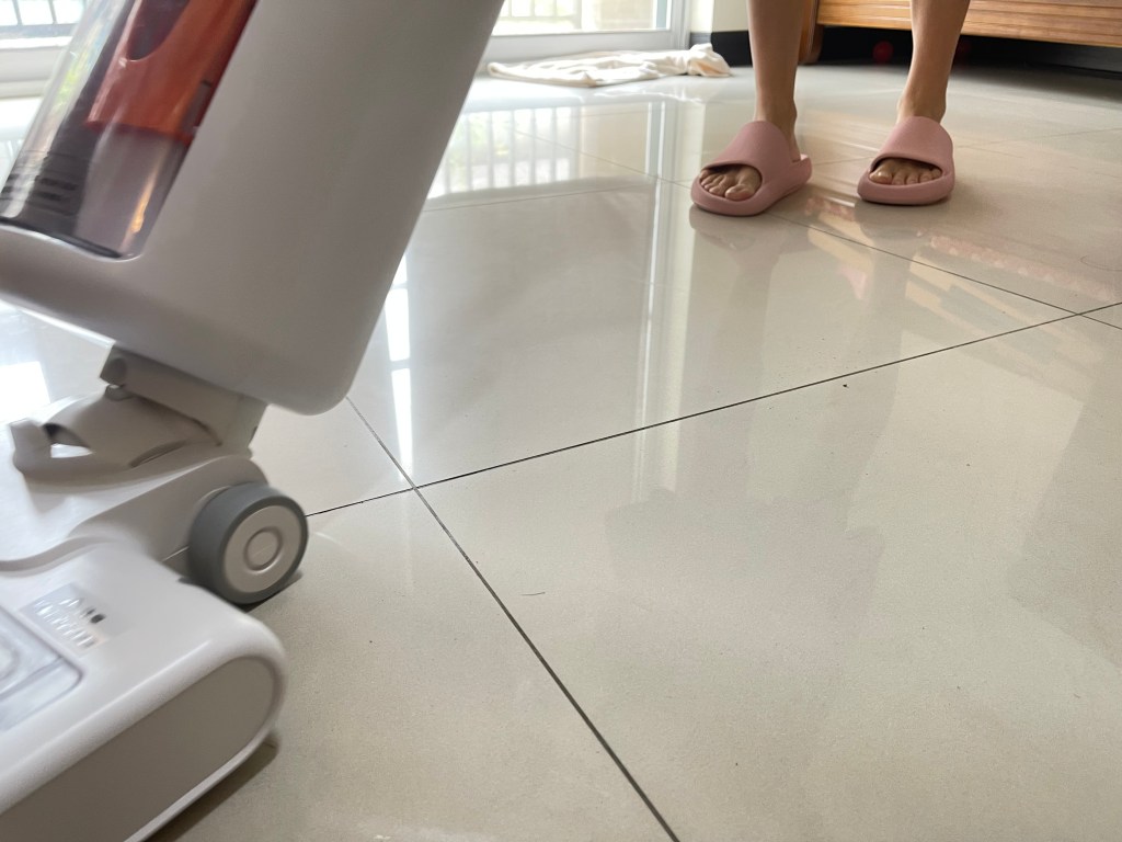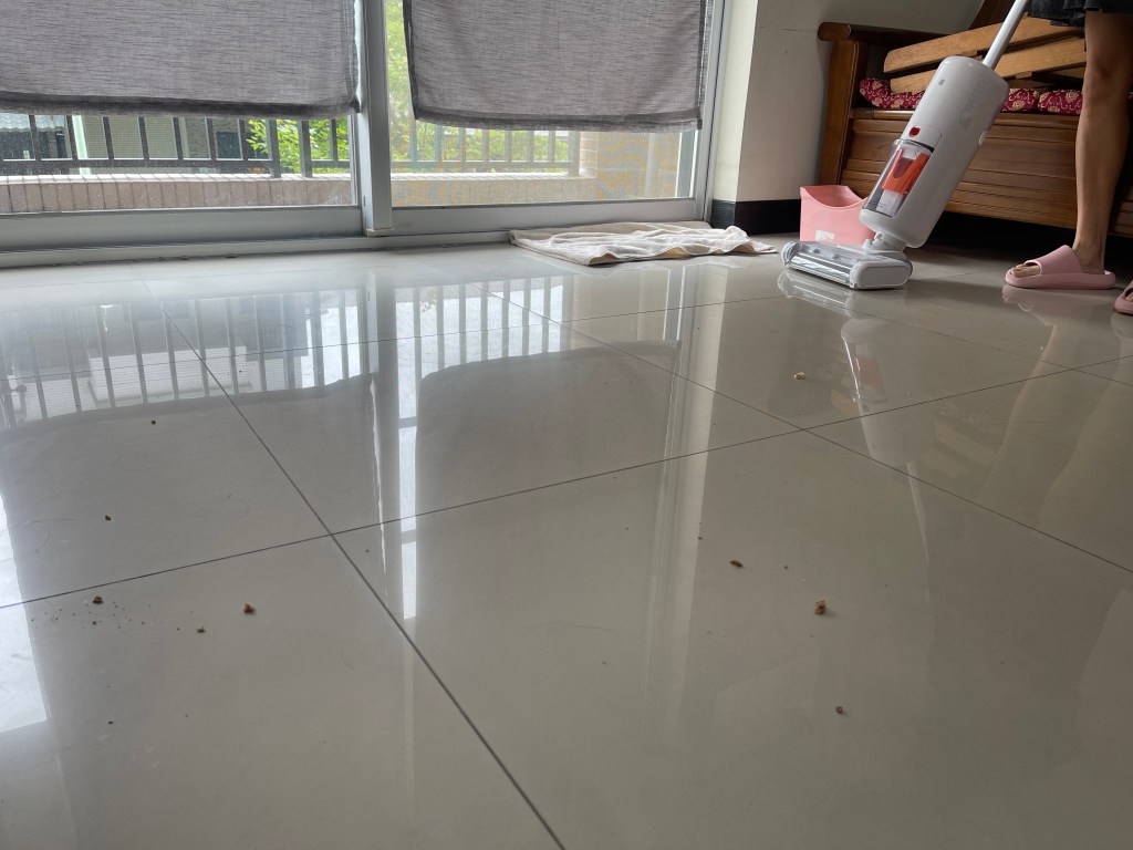 實際來一段正常使用下的影片,地板很明顯看得出機器是持續有出水在拖,不過地板只有2-3分濕而已,比起使用傳統拖把,已經是很乾爽了。