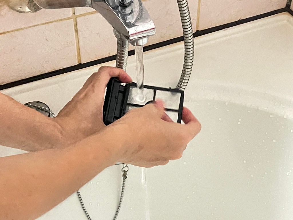 污水箱上方是HEPA的濾網,可以阻隔髒污、灰塵、毛髮等等,過濾之後會將空氣排出,濾網是可水洗的,省錢環保,不用耗材。