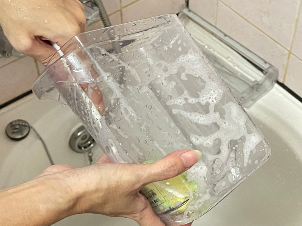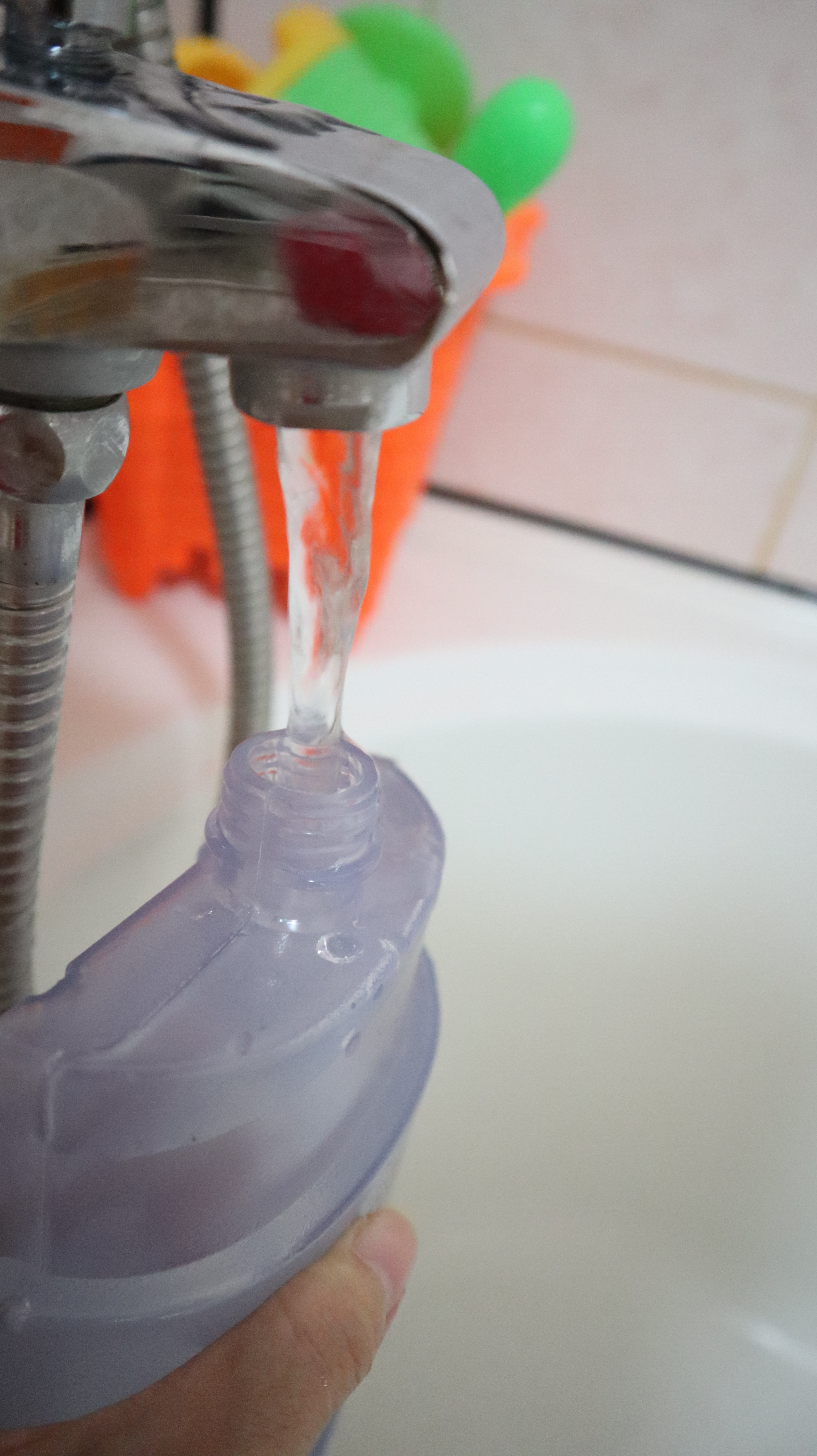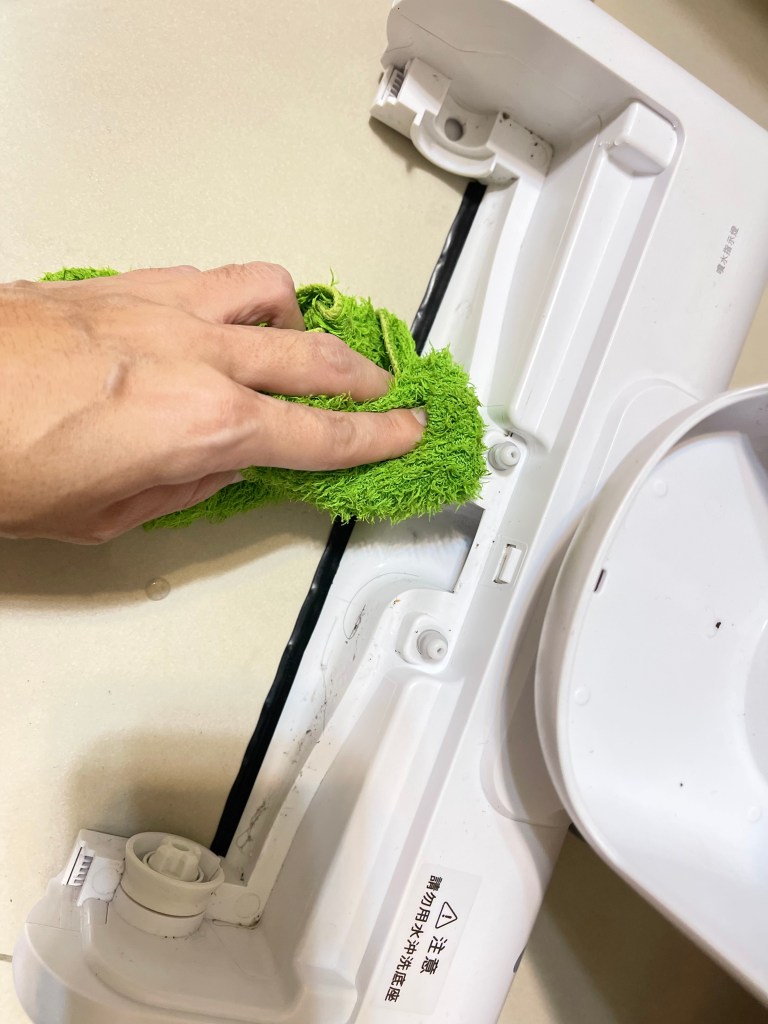 在淨水箱凹陷處做提取就能拆下,可以用全清水,或者在清水裡加一些中性不起泡清潔劑,甚至我有添加次氯酸水殺菌清潔。
