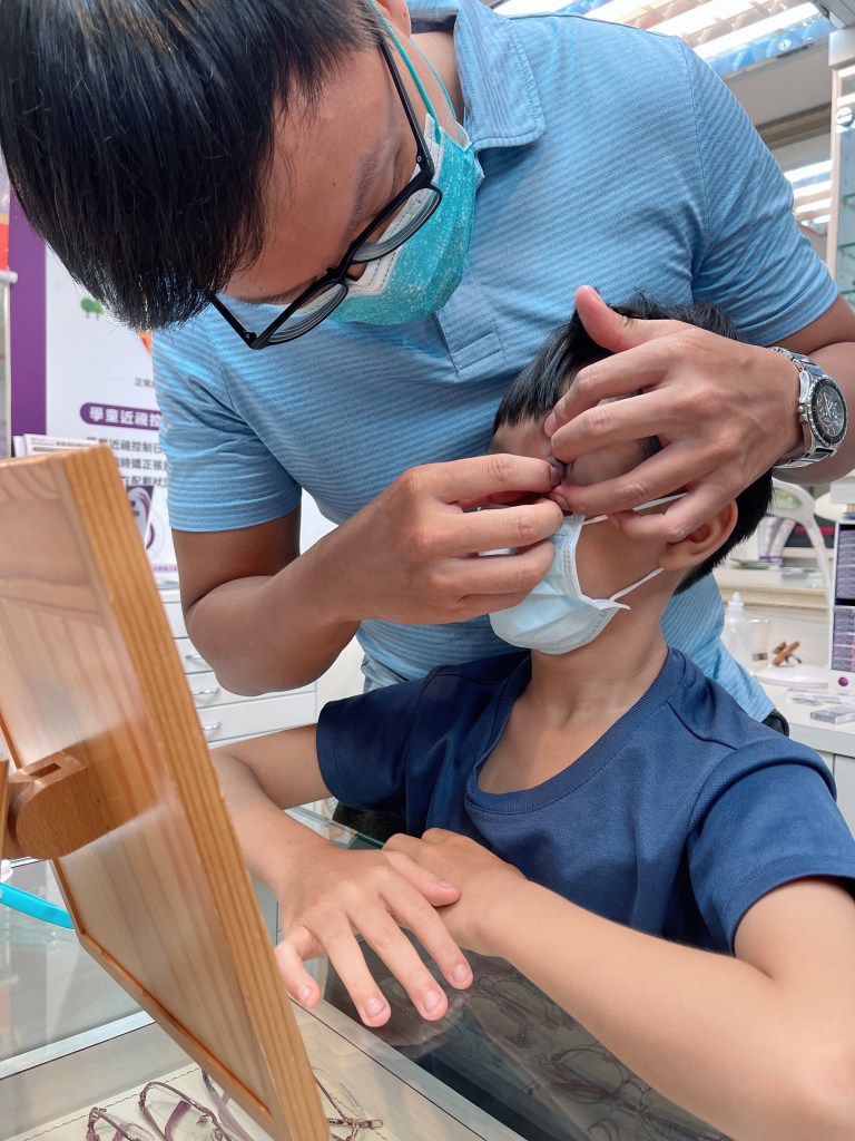 朋友說角塑片的確會較硬些,一開始配戴會需要時間習慣,我就怕3️⃣會覺得有東西在眼睛裡卡卡的會去揉,一直很猶豫異物感這件事!就算另一個朋友說兒童近視控制專用日拋舒適度很高,我也會擔心他會害怕配戴過程,加上家附近的傳統眼科沒有這類產品能諮詢,而且散瞳因為會畏光只能斷斷續續點,經過三個月的蹉跎,我看到他在看遠物真的把頭側得太偏了,決定還是要去找設備較新穎的專業眼科諮詢。